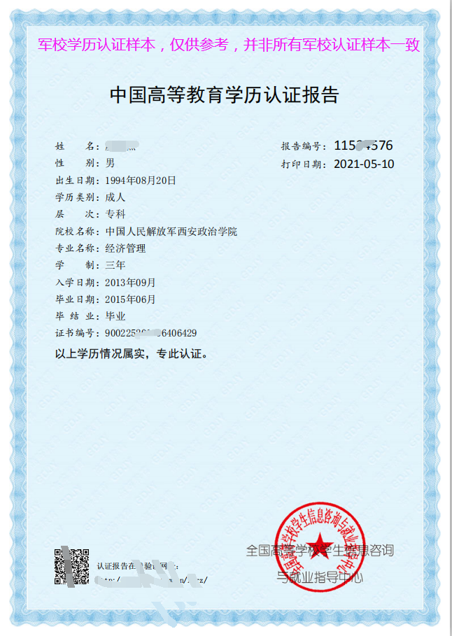 军校学历样本如上图 军校学历认证 军校学历为什么网上查询不到 是因为需要认证。