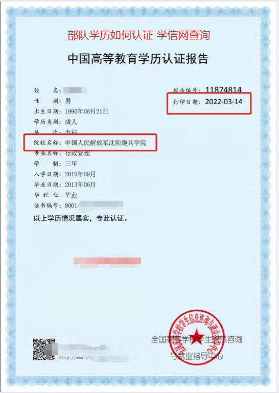 沈阳炮兵学院学历认证报告查询#毕业证查询#毕业证遗失补办#部队学历查询#